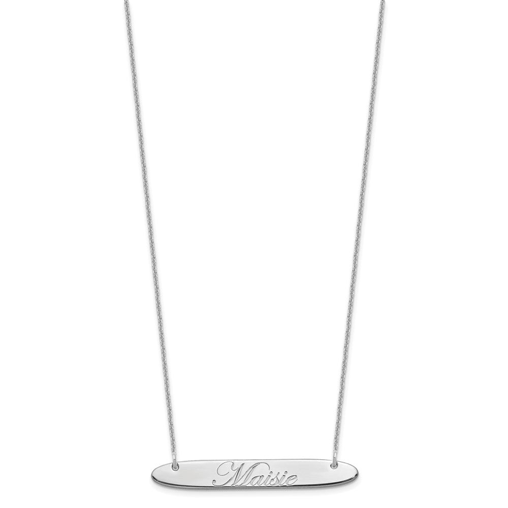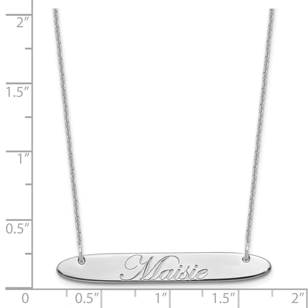10k White Gold Medium Oblong EDWARDIAN SCRIPT Bar Necklace