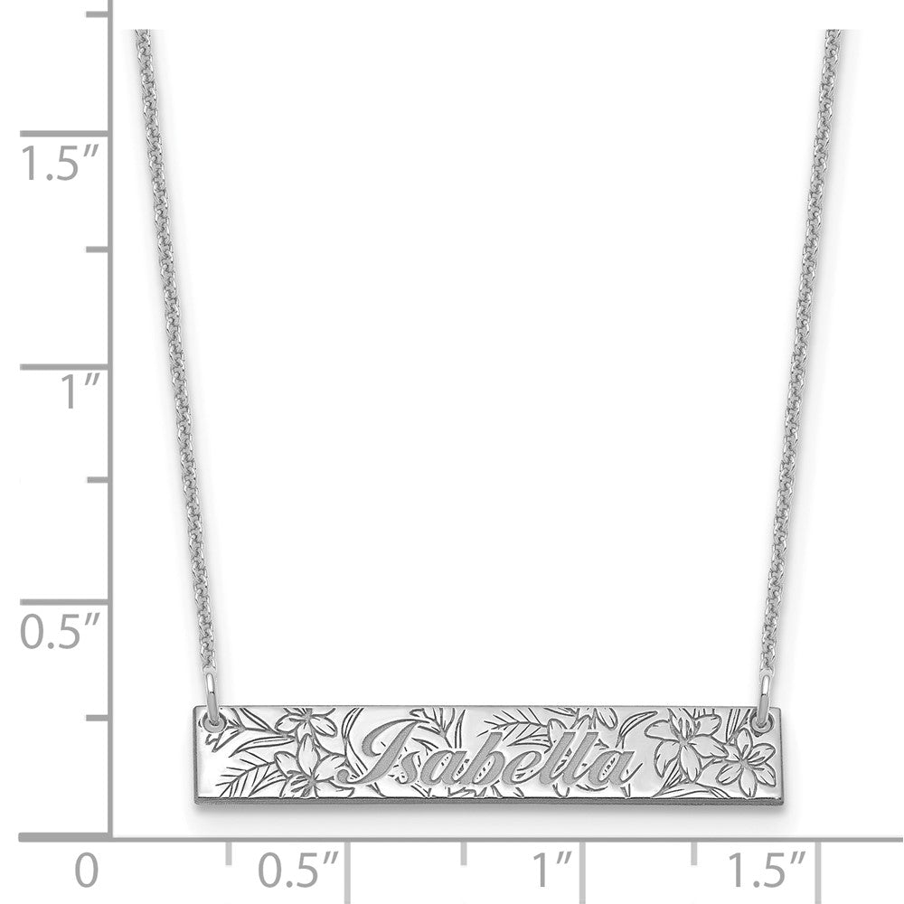 10k White Gold Name and Birth Flower Bar Necklace