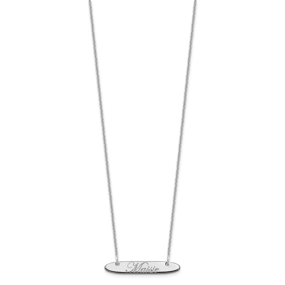 10k White Gold Small Oblong EDWARDIAN SCRIPT Bar Necklace