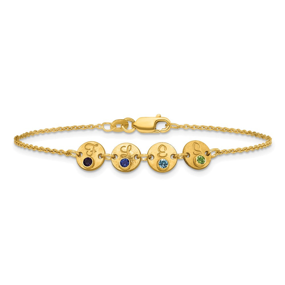 10k Yellow Gold 4 Disc with Initial and Birthstone Bracelet