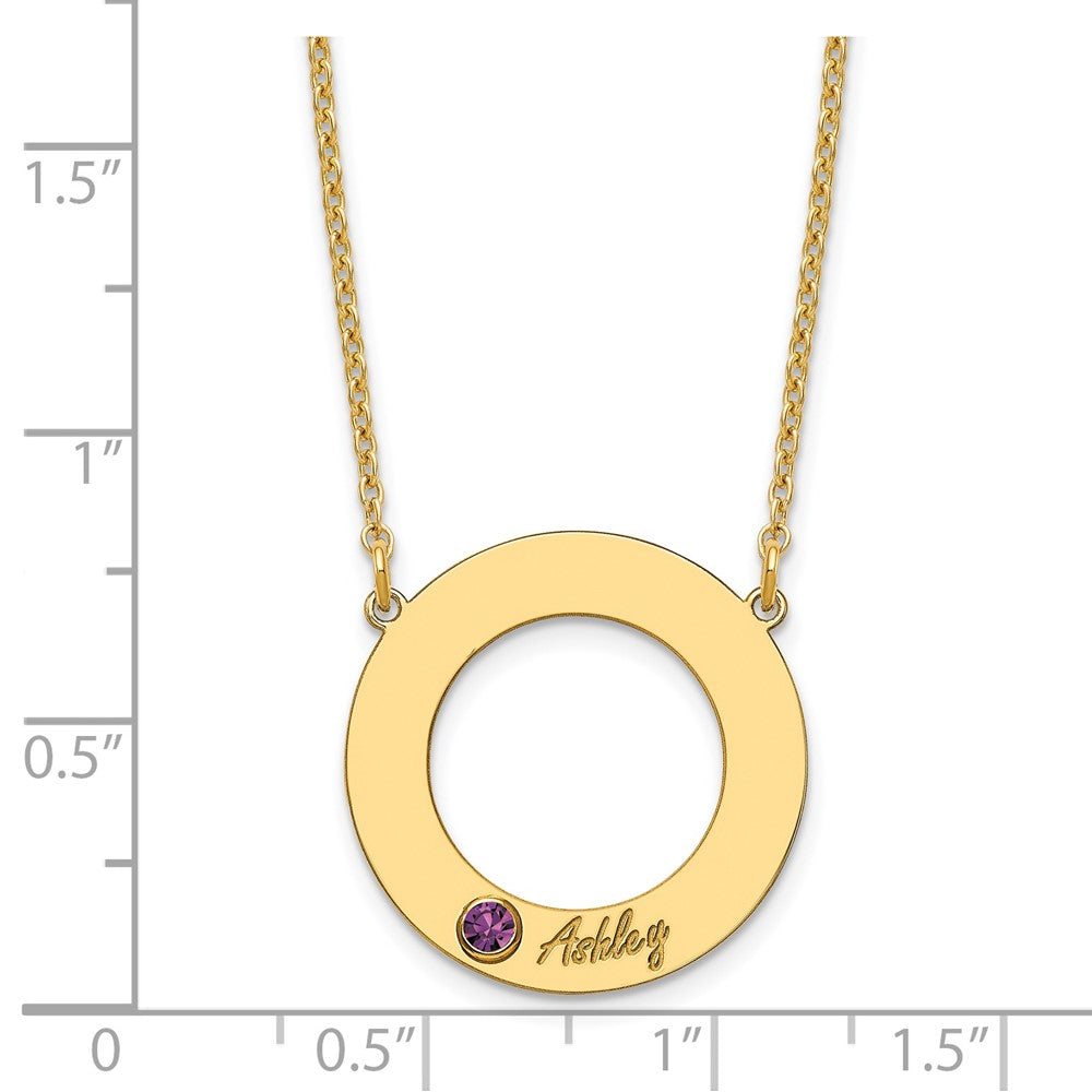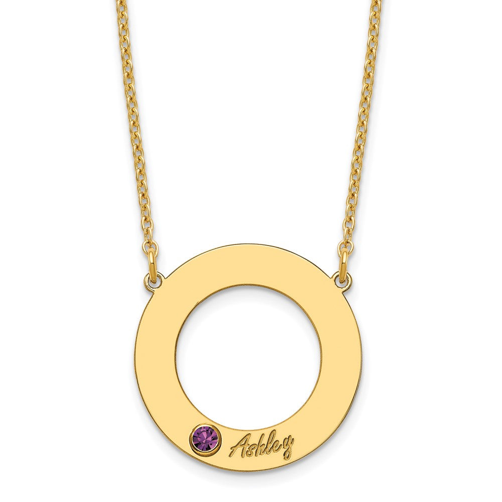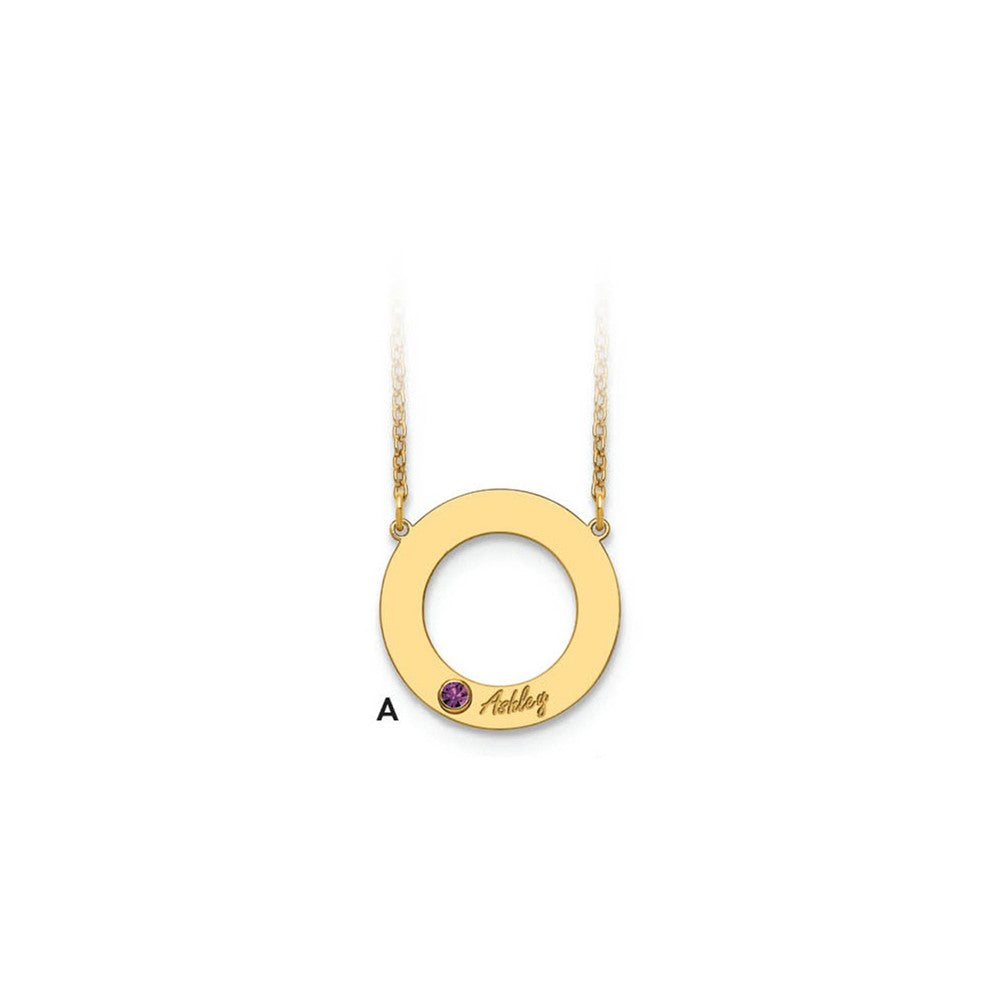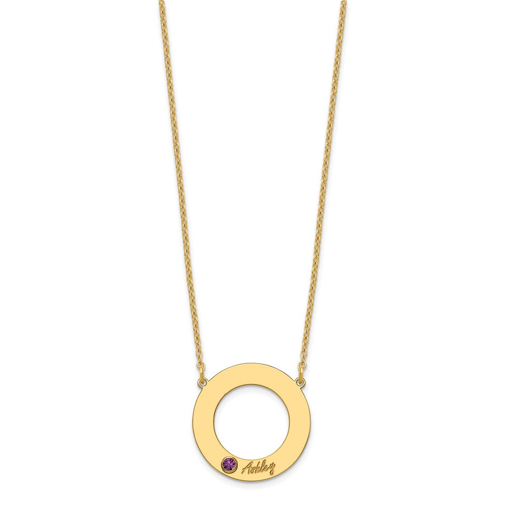 10KY 1 Name and Birthstone w/ 14k Bezel Cut Out Circle Necklace