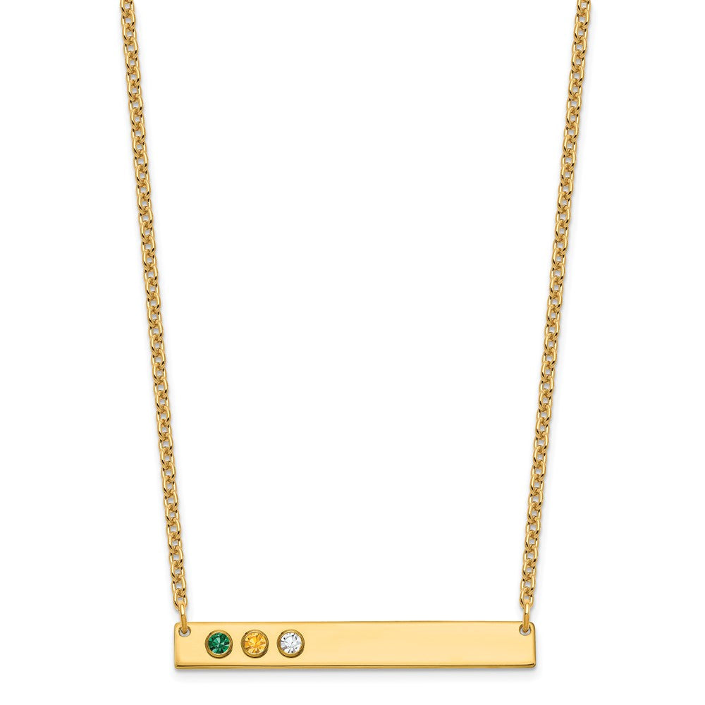 10KY 3 Birthstone w/ 14k Bezel Large Bar Necklace