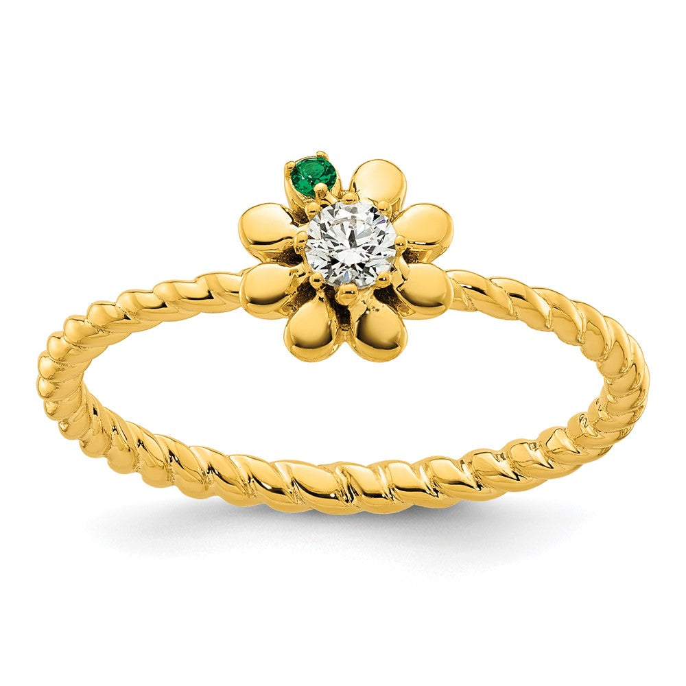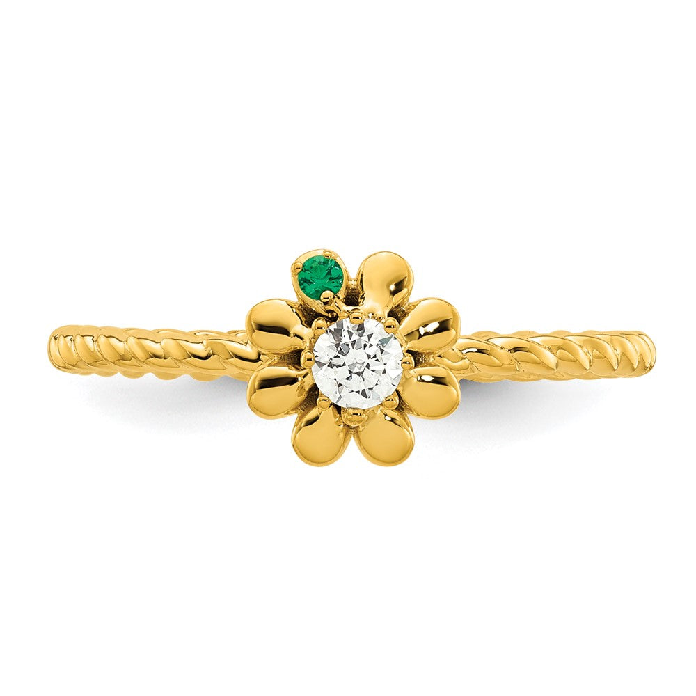 14k 1 Genuine Birthstone Flower with Diamond Mother's Ring