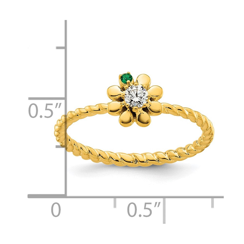 14k 1 Synthetic Birthstone Flower with Diamond Mother's Ring
