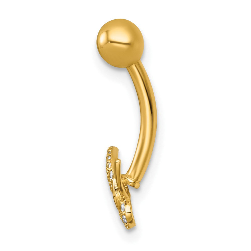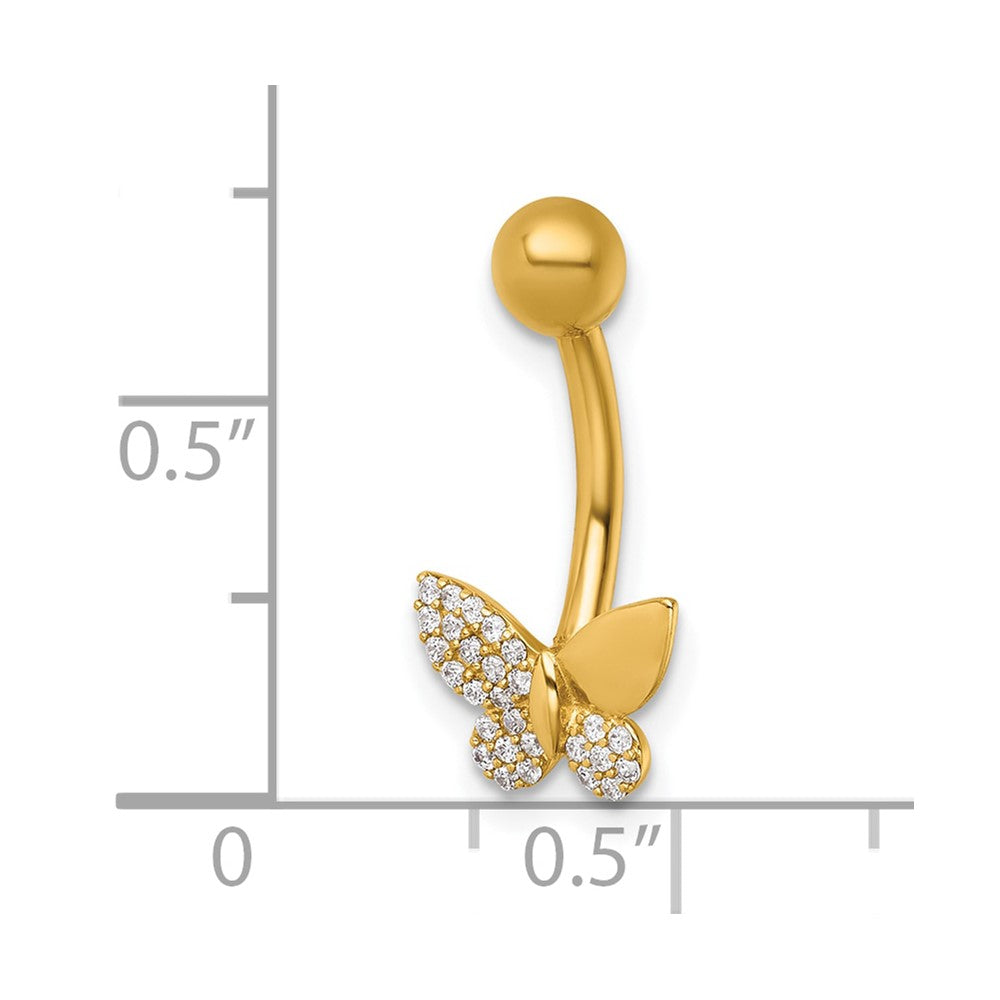 14k 14 Gauge Polished CZ Butterfly Navel Ring