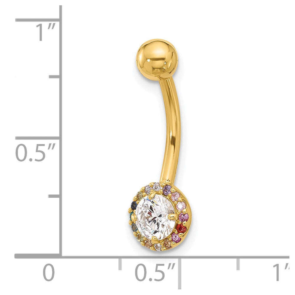 14k 14 Gauge Polished Rainbow CZ Belly / Navel Ring
