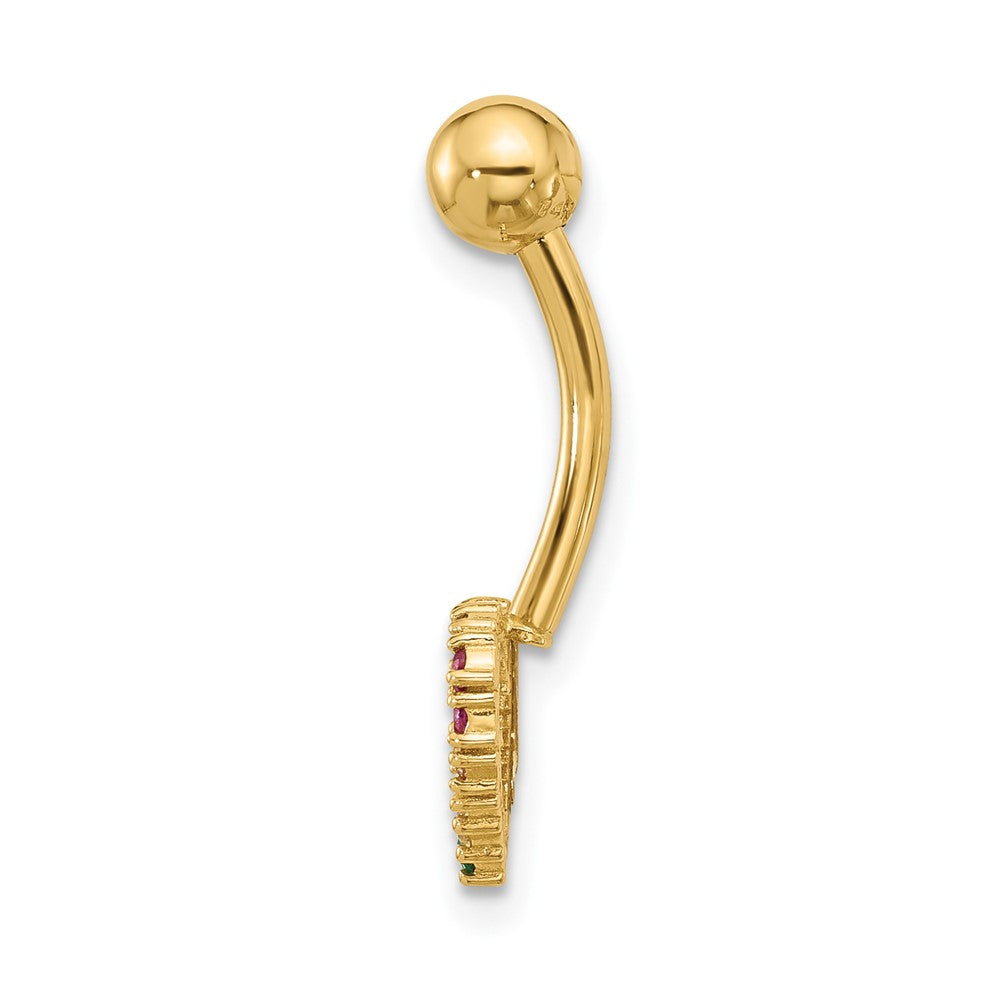 14k 14 Gauge Polished Rainbow CZ Heart Belly / Navel Ring