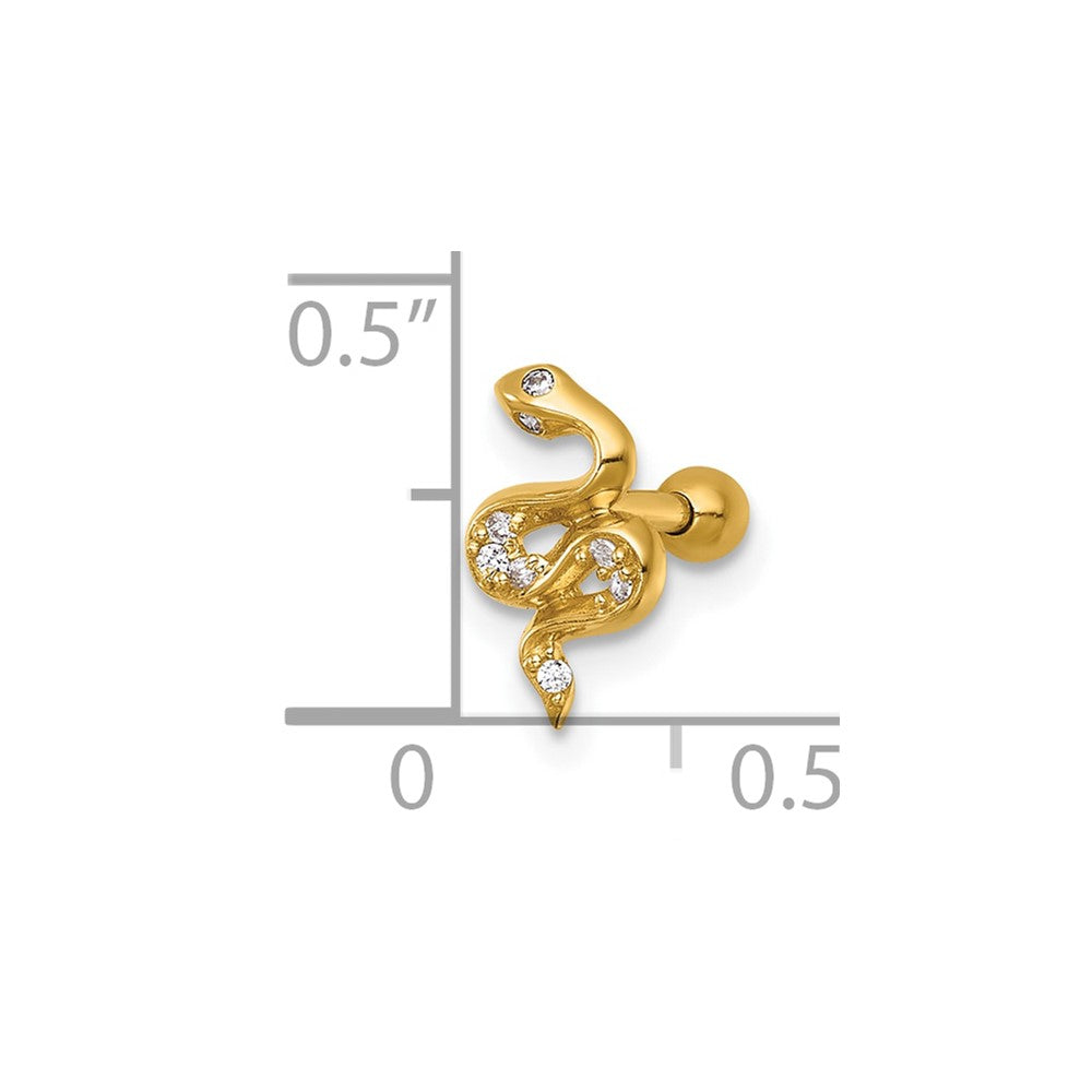 14k 16 Gauge Polished CZ Snake Labret Stud
