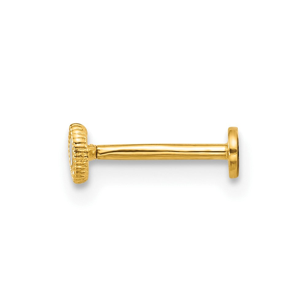 14k 18 Gauge Polished and Textured Marquise-cut CZ Labret Stud