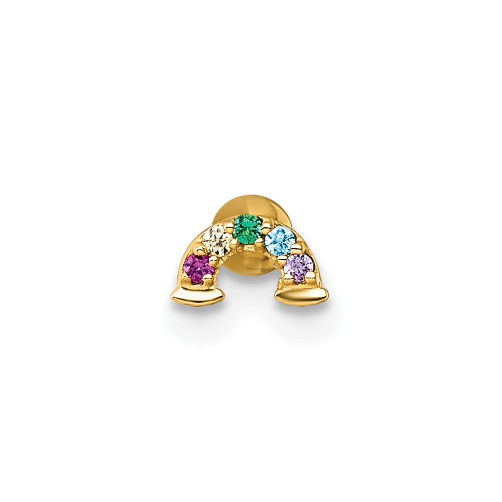 14k 18 Gauge Polished Multicolor CZ and Created Ruby Rainbow Labret Stud