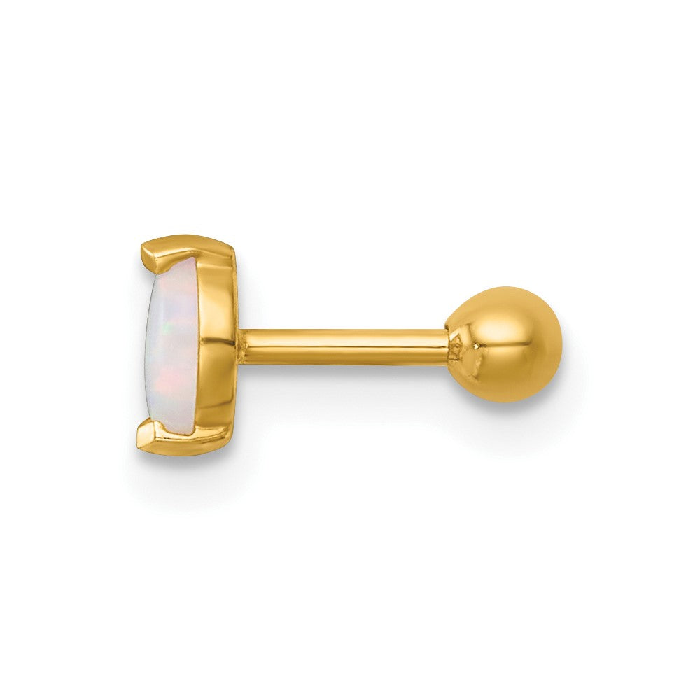 14k 18 Gauge Polished Navette Created Opal Labret Stud