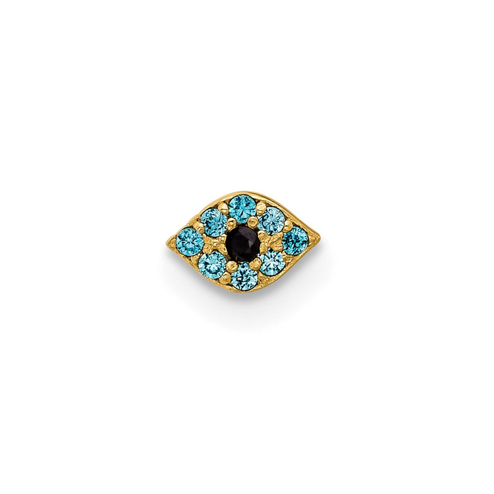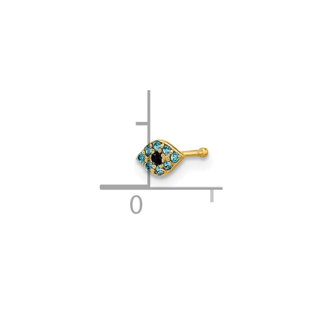 14K 20 Gauge Polished Blue CZ Evil Eye Nose Stud