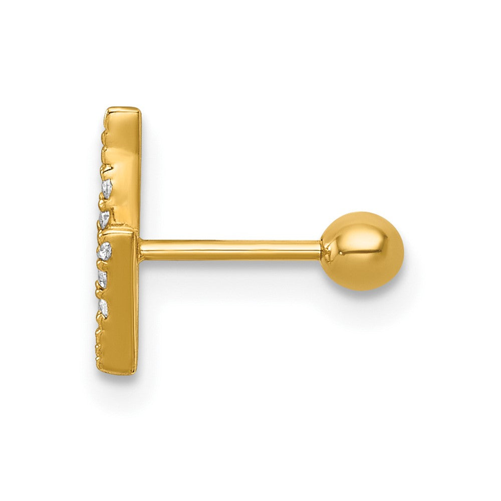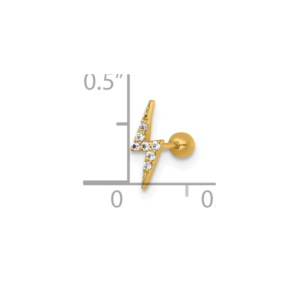 14k 21 Gauge Polished CZ Lightning Bolt Labret Stud