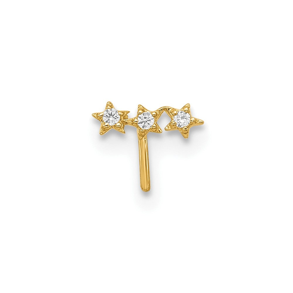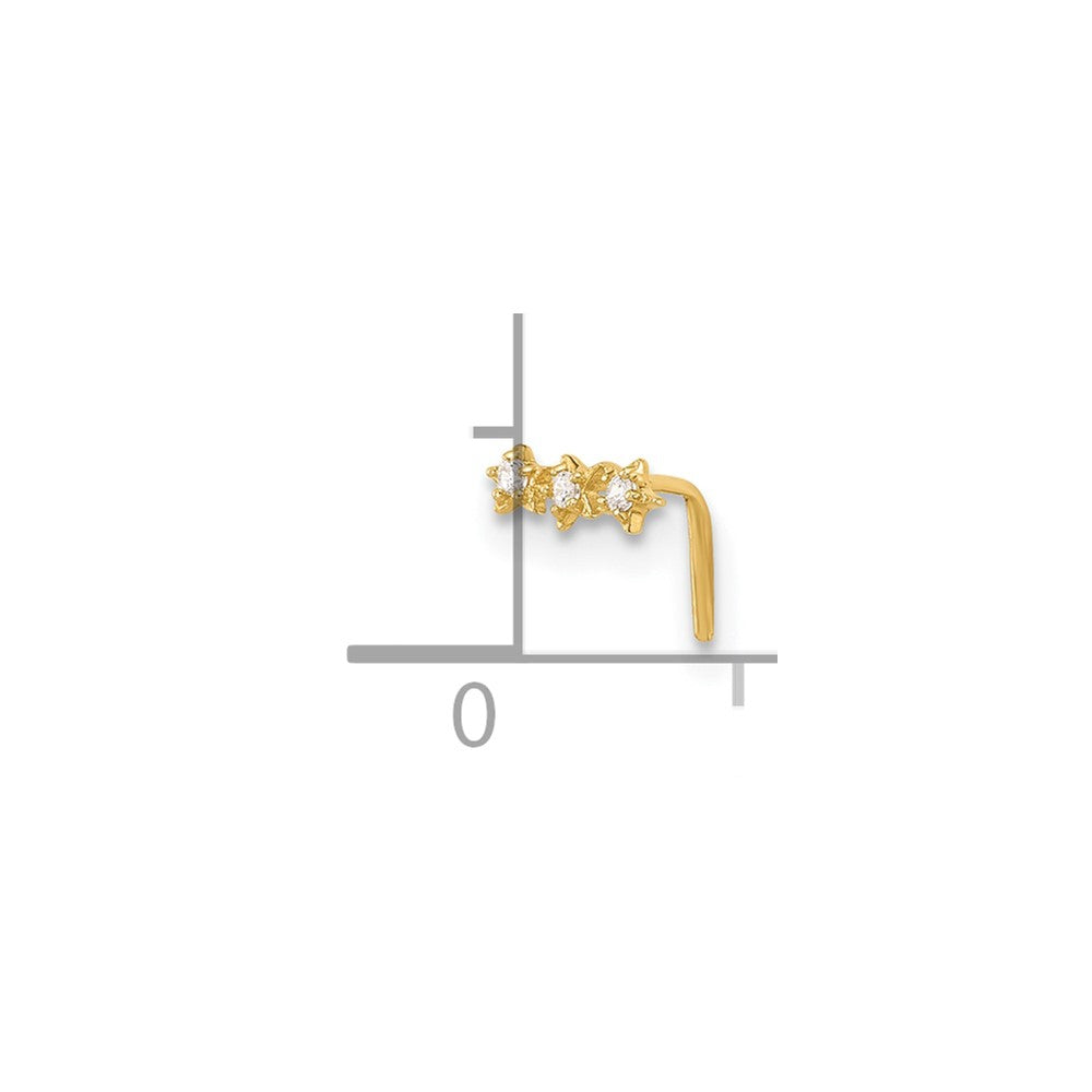 14k 22 Gauge CZ 3-Star Nose Stud
