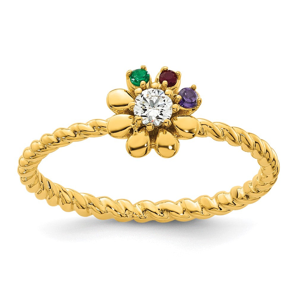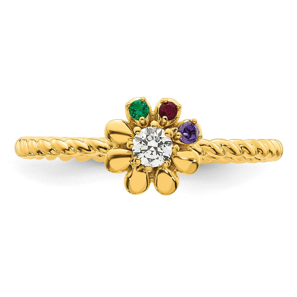 14k 3 Synthetic Birthstone Flower with Diamond Mother's Ring