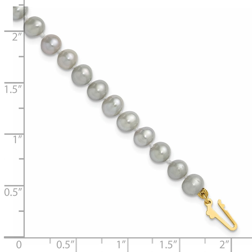14k 5-6mm Grey Near Round Freshwater Cultured Pearl 7.5 inch Bracelet