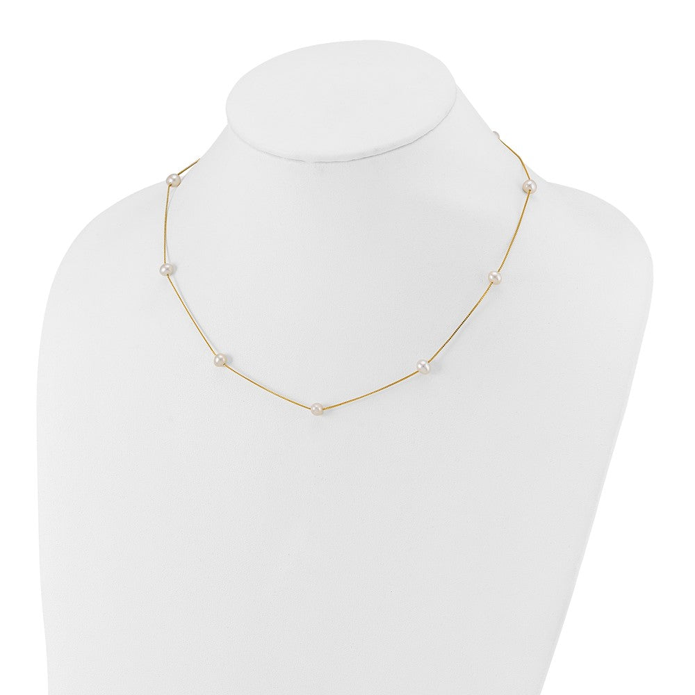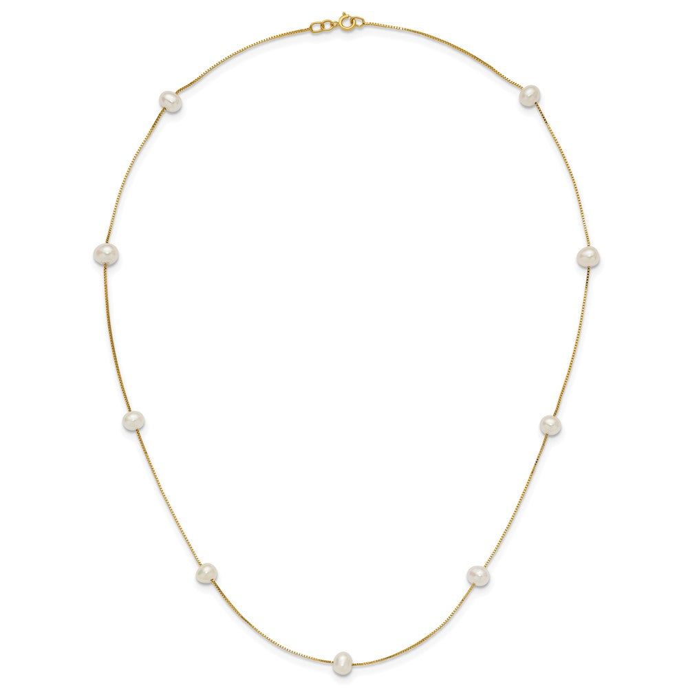 14k 5- White Near-Round Freshwater Cultured Pearl 9-Station Necklace