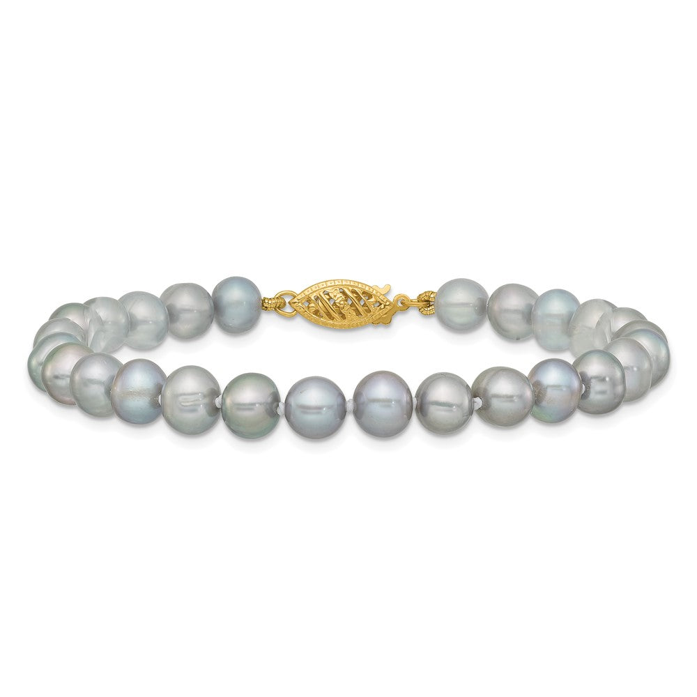 14k 6-7mm Grey Near Round Freshwater Cultured Pearl 7.5 inch Bracelet