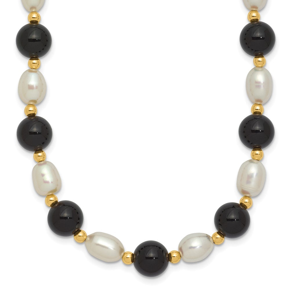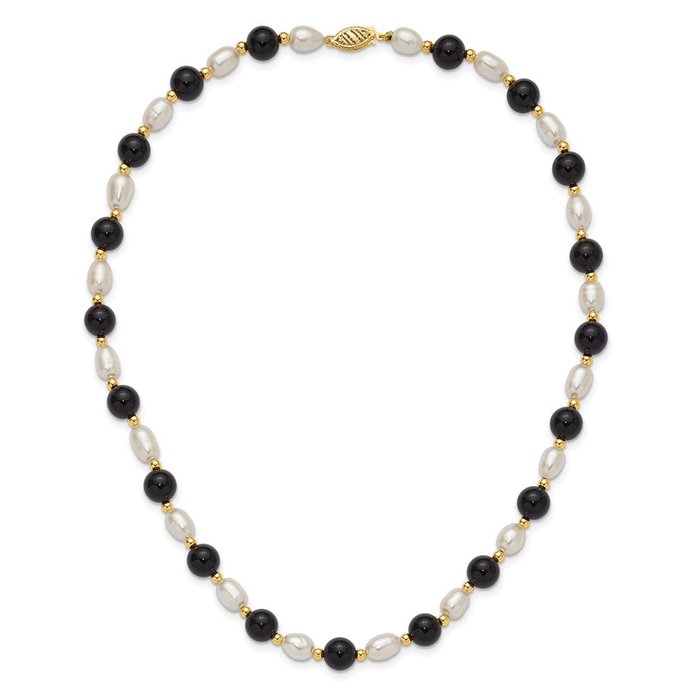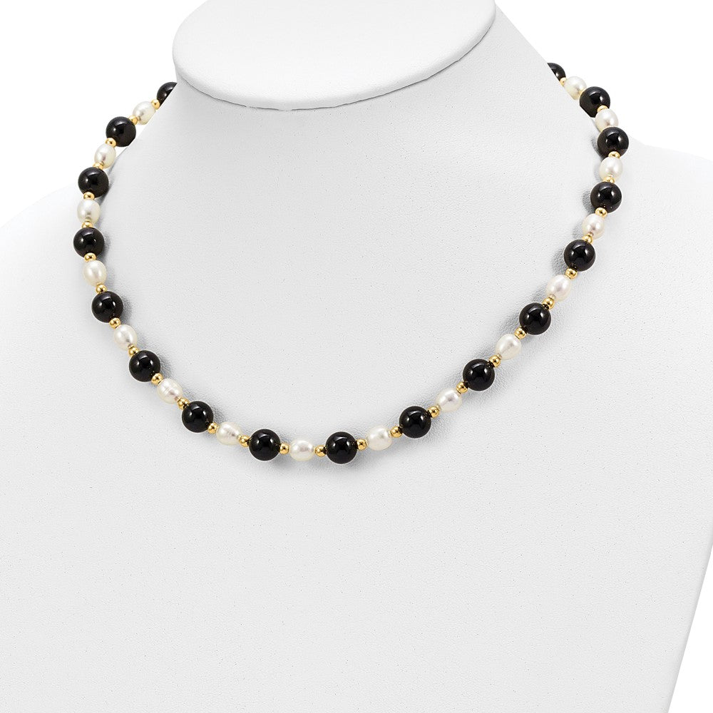 14k 6- White Rice Freshwater Cultured Pearl and Onyx Beads Necklace