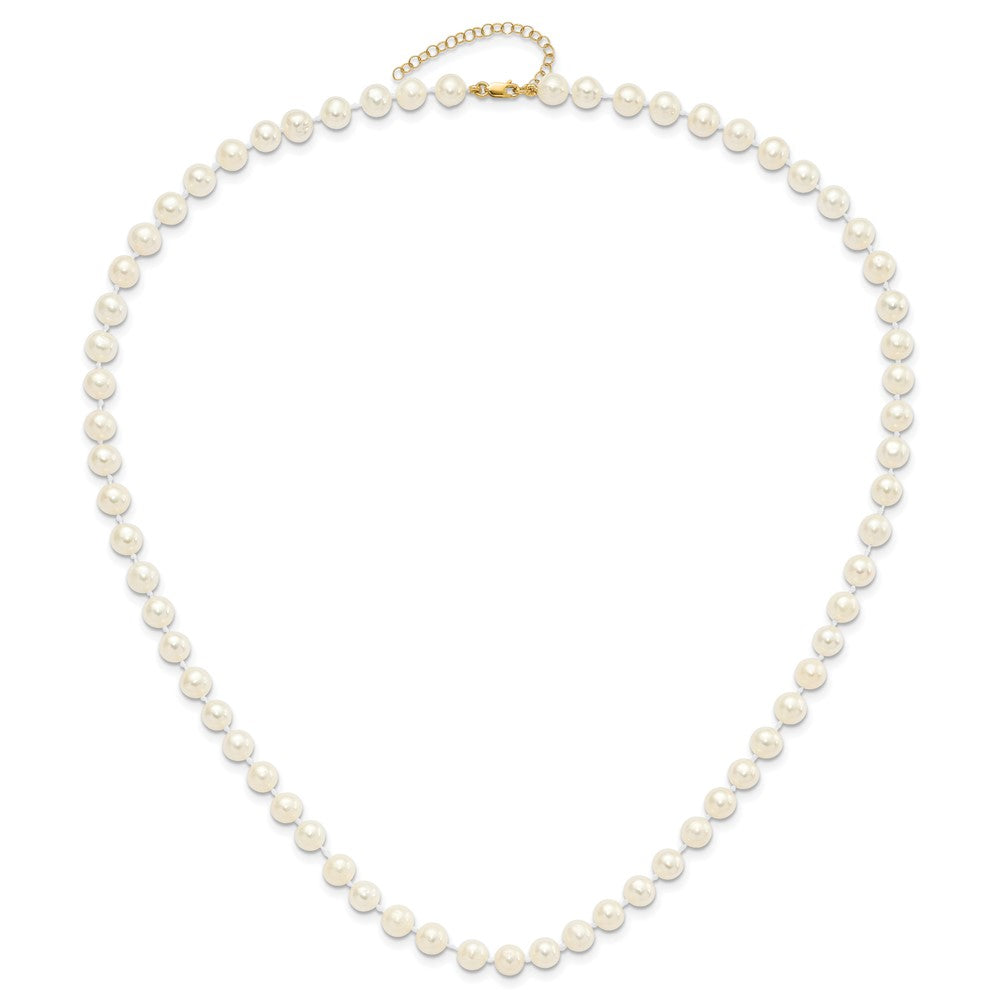 14k 6- White Round Freshwater Cultured Pearl 7. with 1 Extender Bracelet/ with Extender Necklace/Button Earrings Set