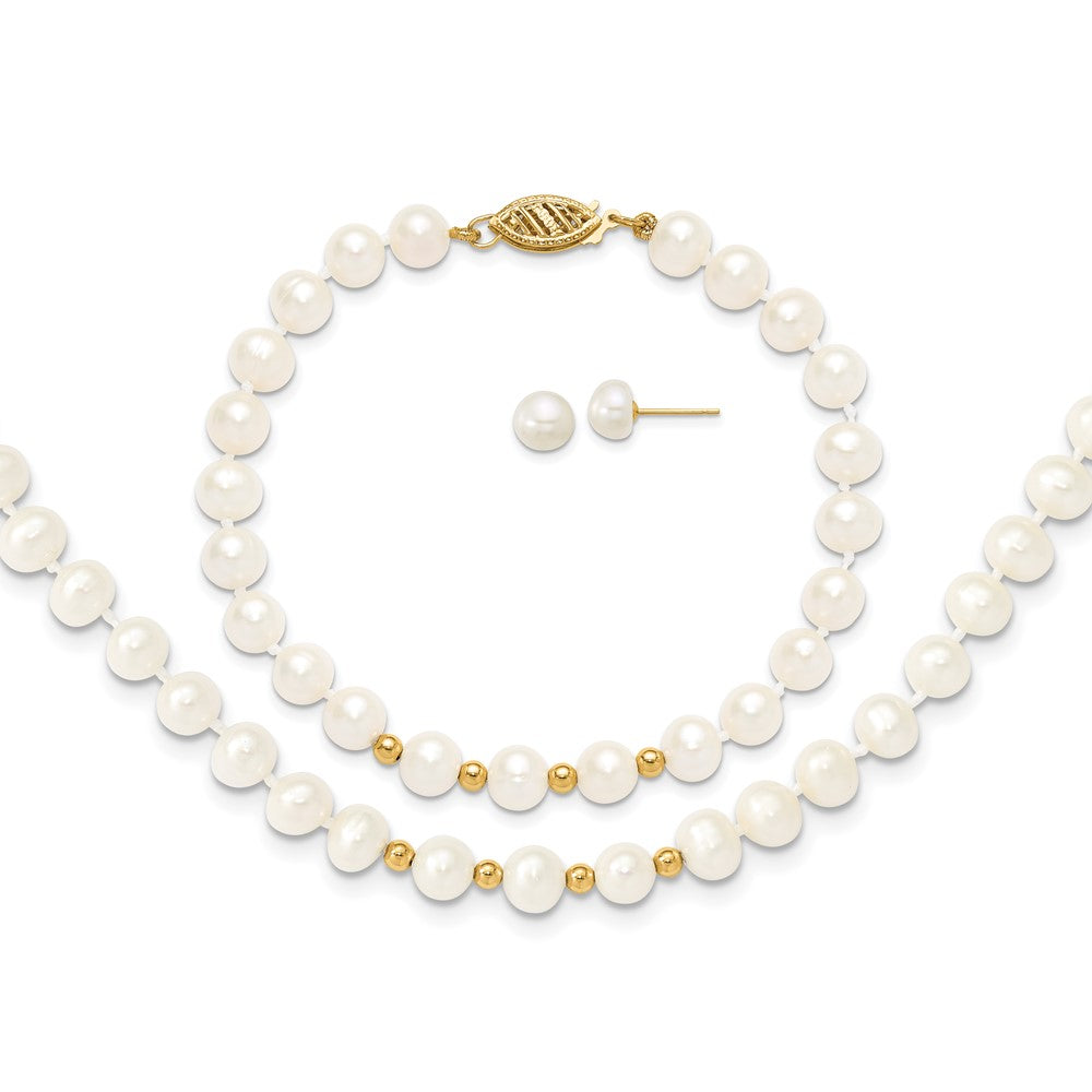 14k 6-7mm White Semi-Round Freshwater Cultured Pearl 18 inch Necklace/7.25 in Bracelet/Button Post Earrings Set