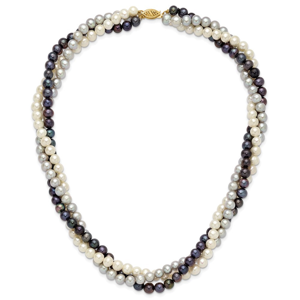 14k 6- White/Gray/Black Near-Round Freshwater Cultured Pearl 3-Strand Necklace