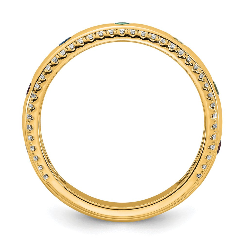 14k 7 Synthetic Birthstone and Diamond Mother's Ring