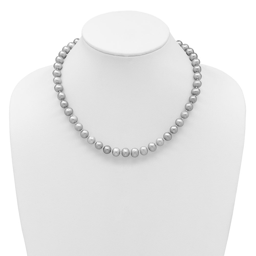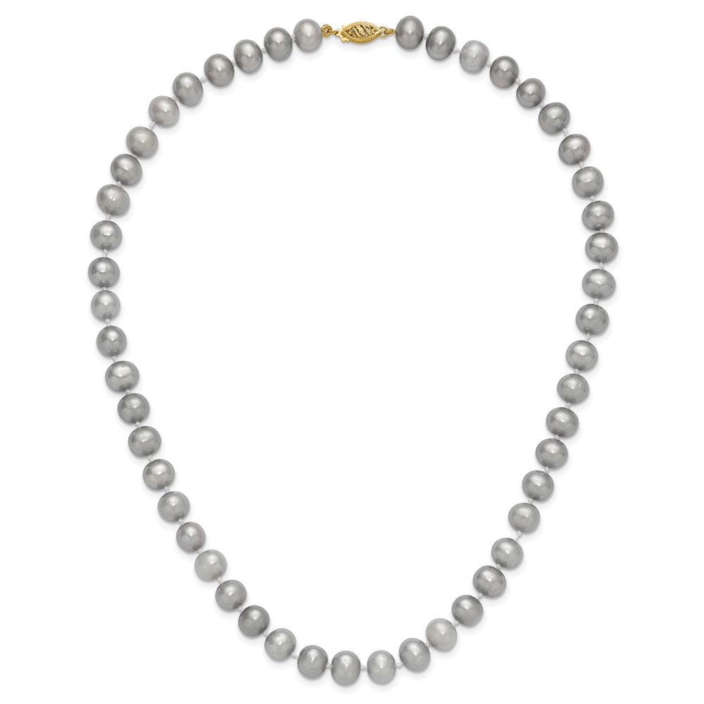 14K 8-9mm Grey Near Round Freshwater Cultured Pearl 20 inch Necklace