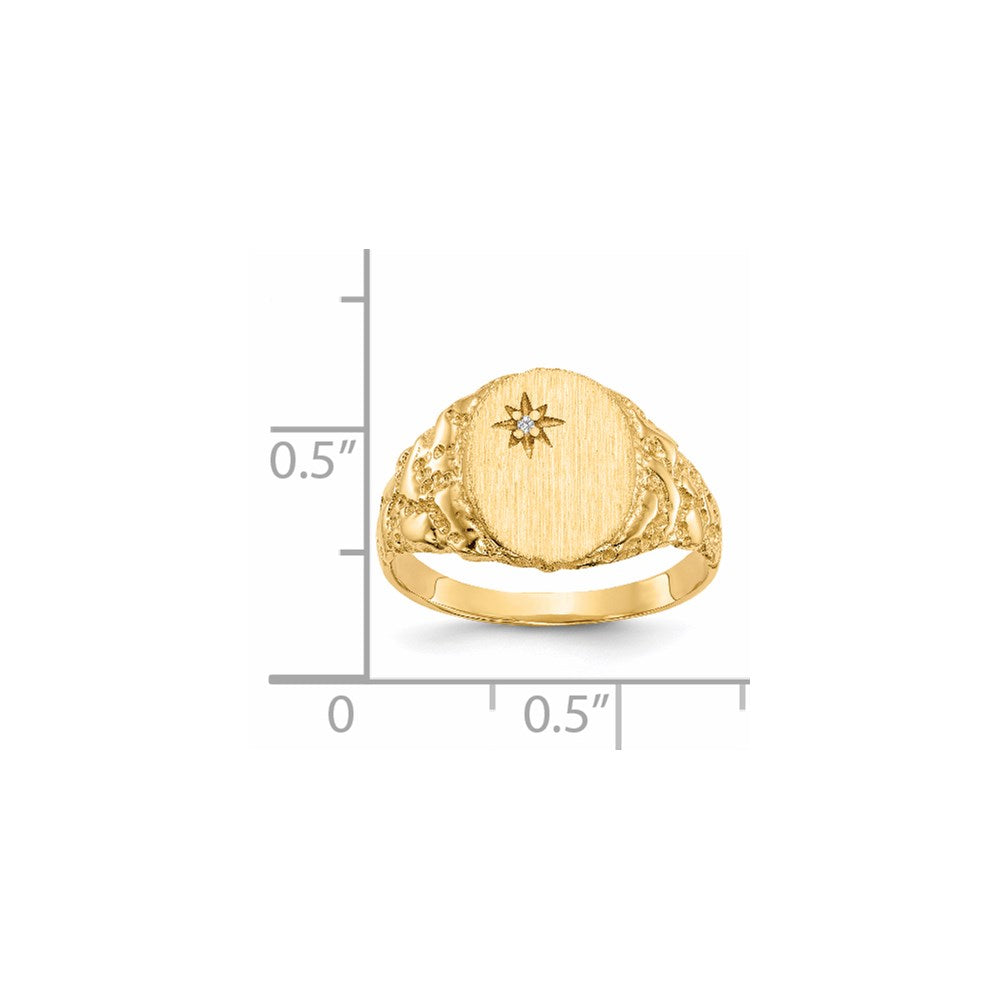 14k 9.0x11. Closed Back AA Diamond Signet Ring