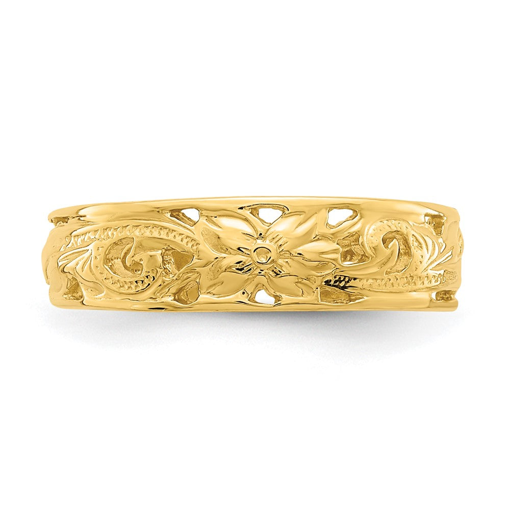 14k Adjustable Flower w/ Leaf Trim Toe Ring