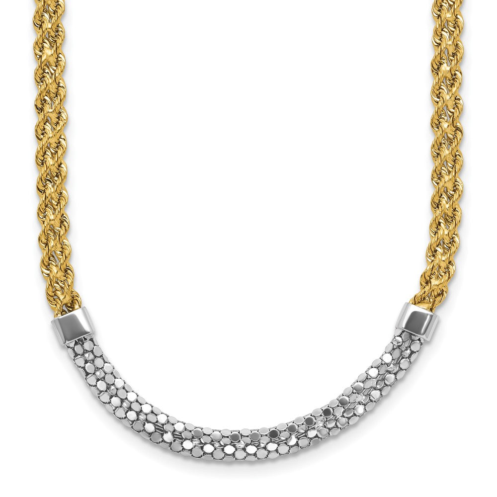 14K and White Rhodium Diamond-cut Twisted Fancy Rope Necklace