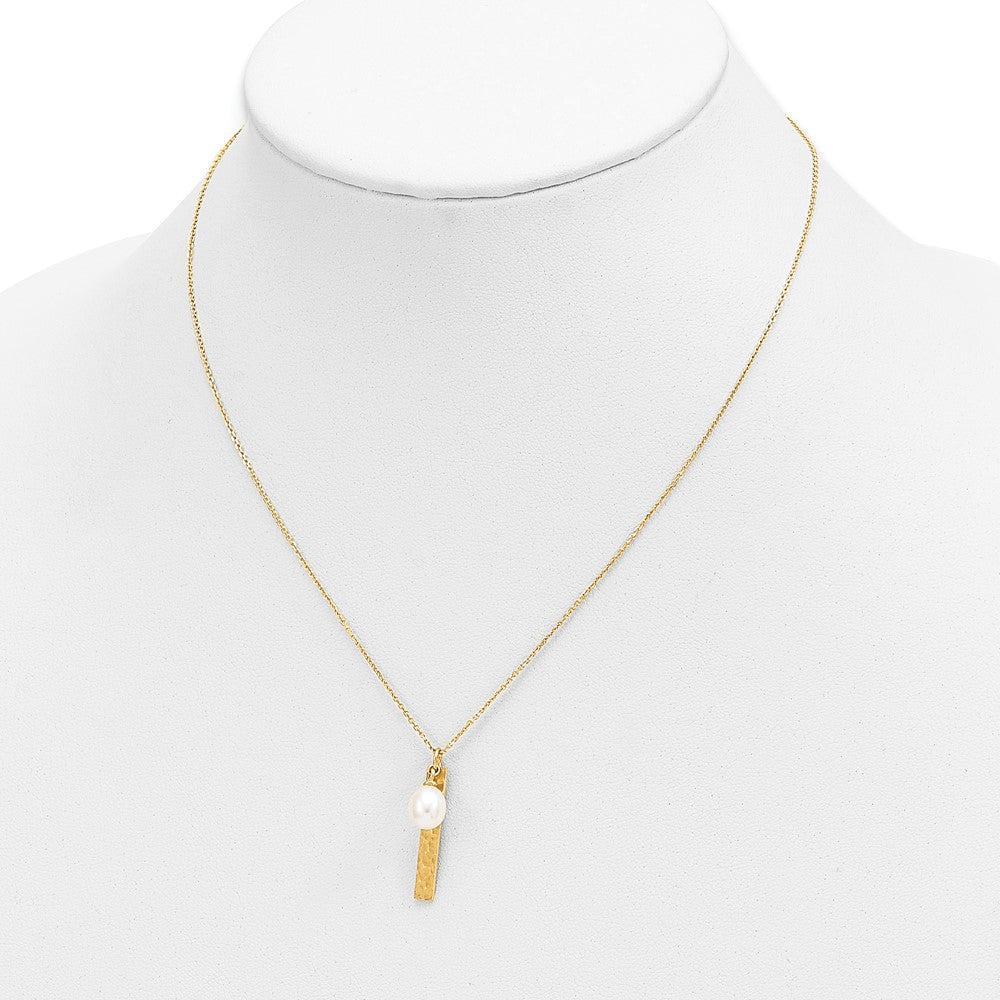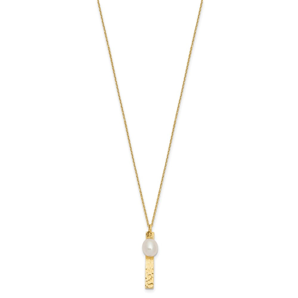 14k Brushed and Hammered 6- White Rice Freshwater Cultured Pearl Necklace