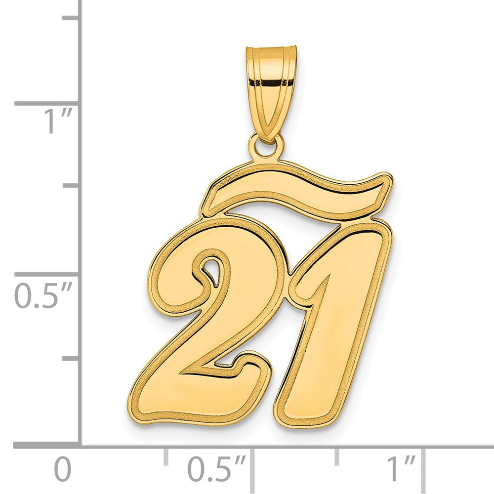 14k Brushed Border Script Number 21 Pendant
