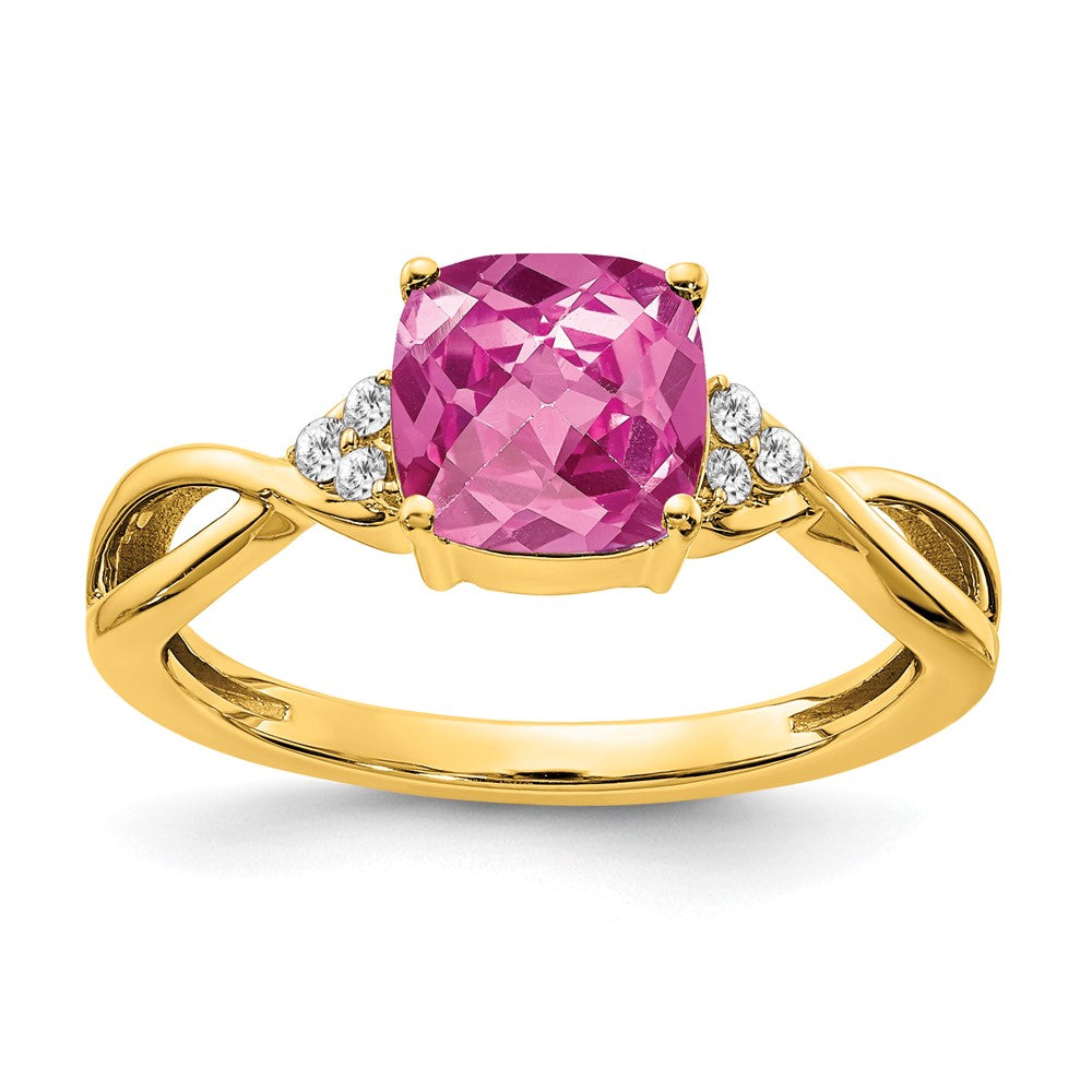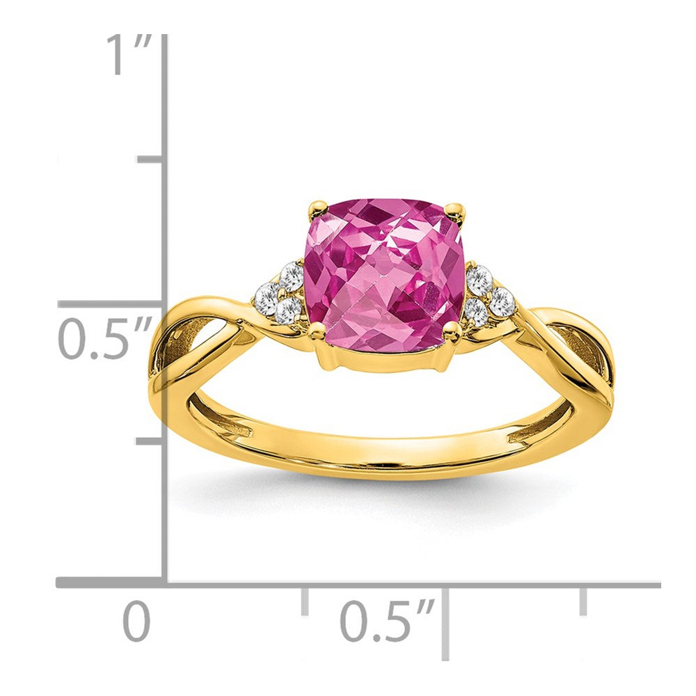 14k Checkerboard Created Pink Sapphire and Diamond Ring