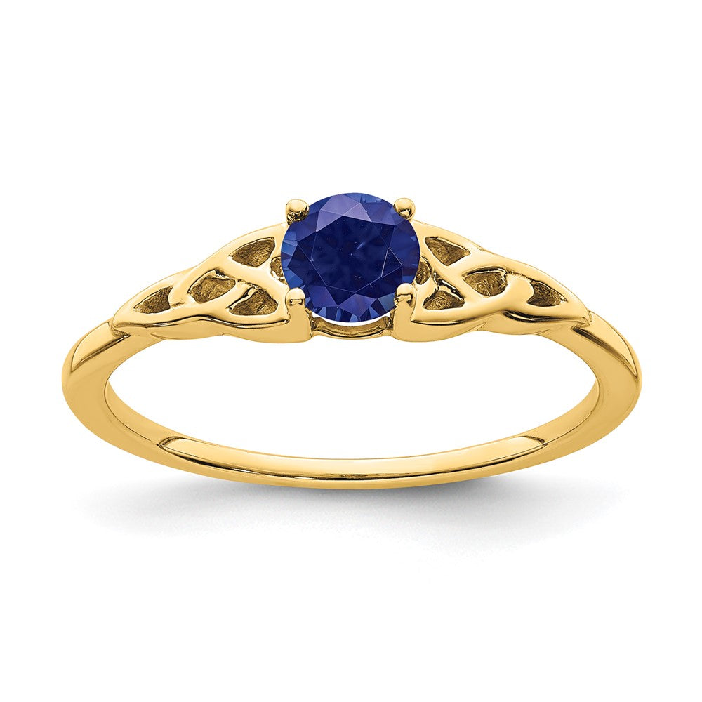 14K Created Sapphire Celtic Knot Ring