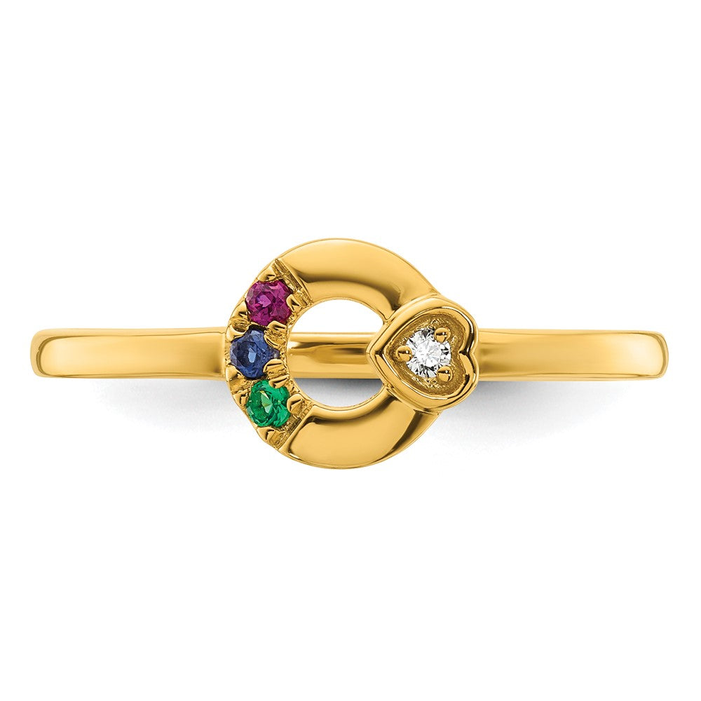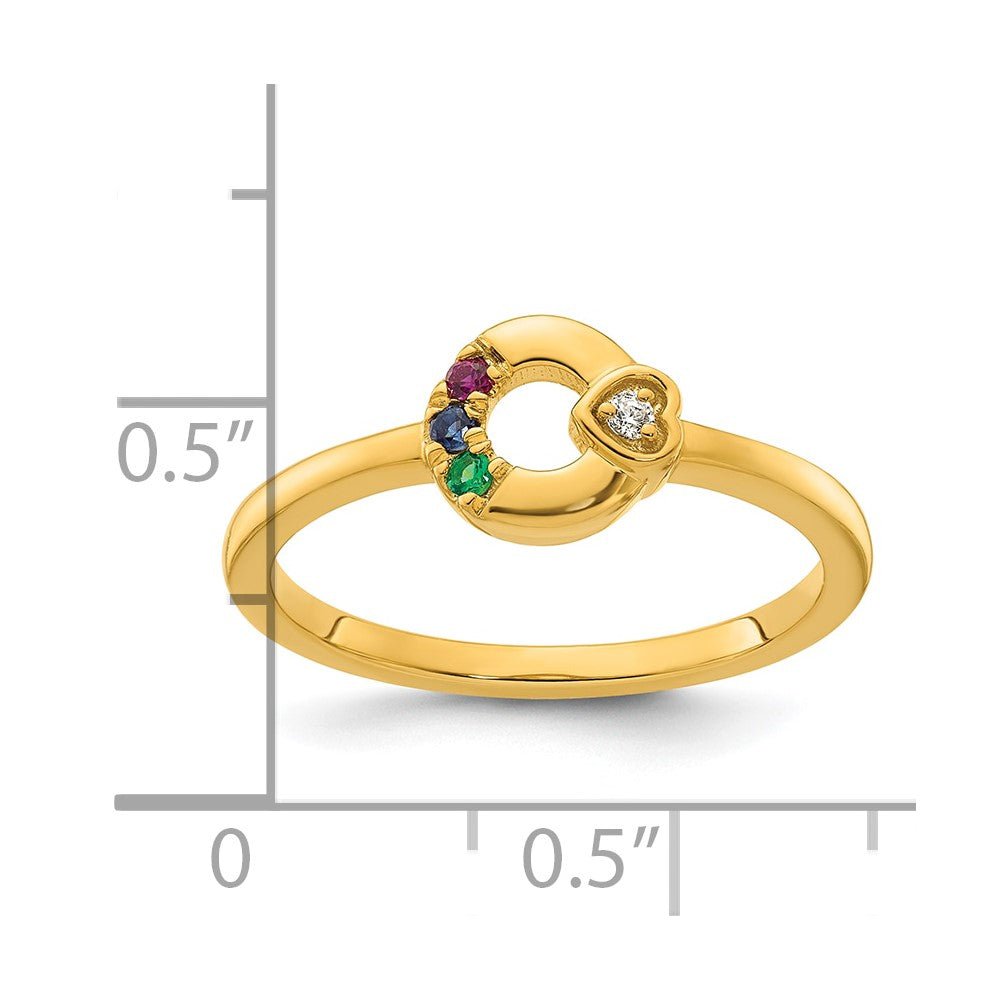 14k Dia. Heart w/ 3 Birthstone Mother's Circle Ring Semi-mount