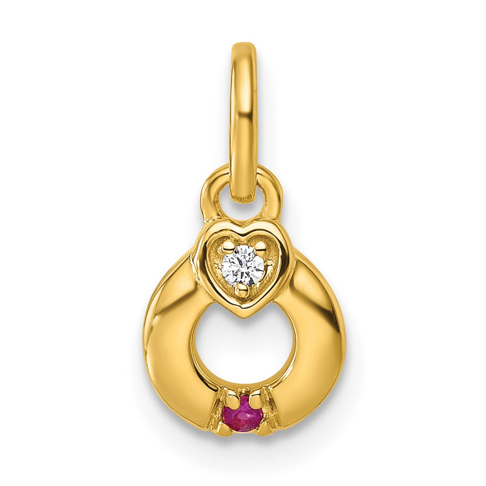 14k Dia. Heart w/1 Genuine Birthstone Mother's Circle Pendant