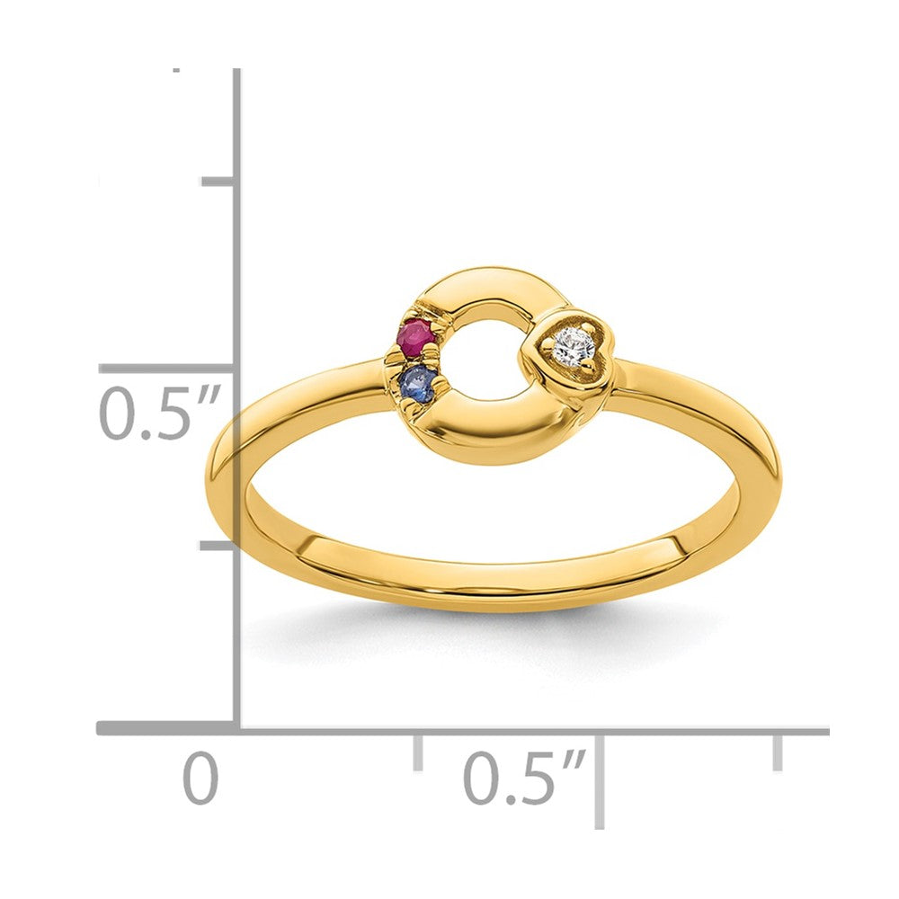 14k Dia. Heart with 2 Birthstone Mother's Circle Ring Semi-mount