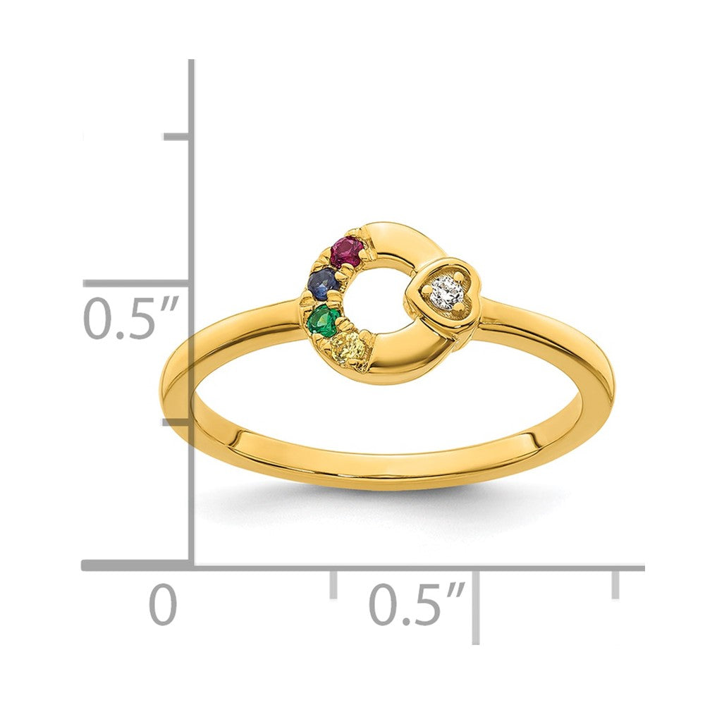 14k Diamond Heart w/ 4 Birthstone Mother's Circle Ring Semi-mount