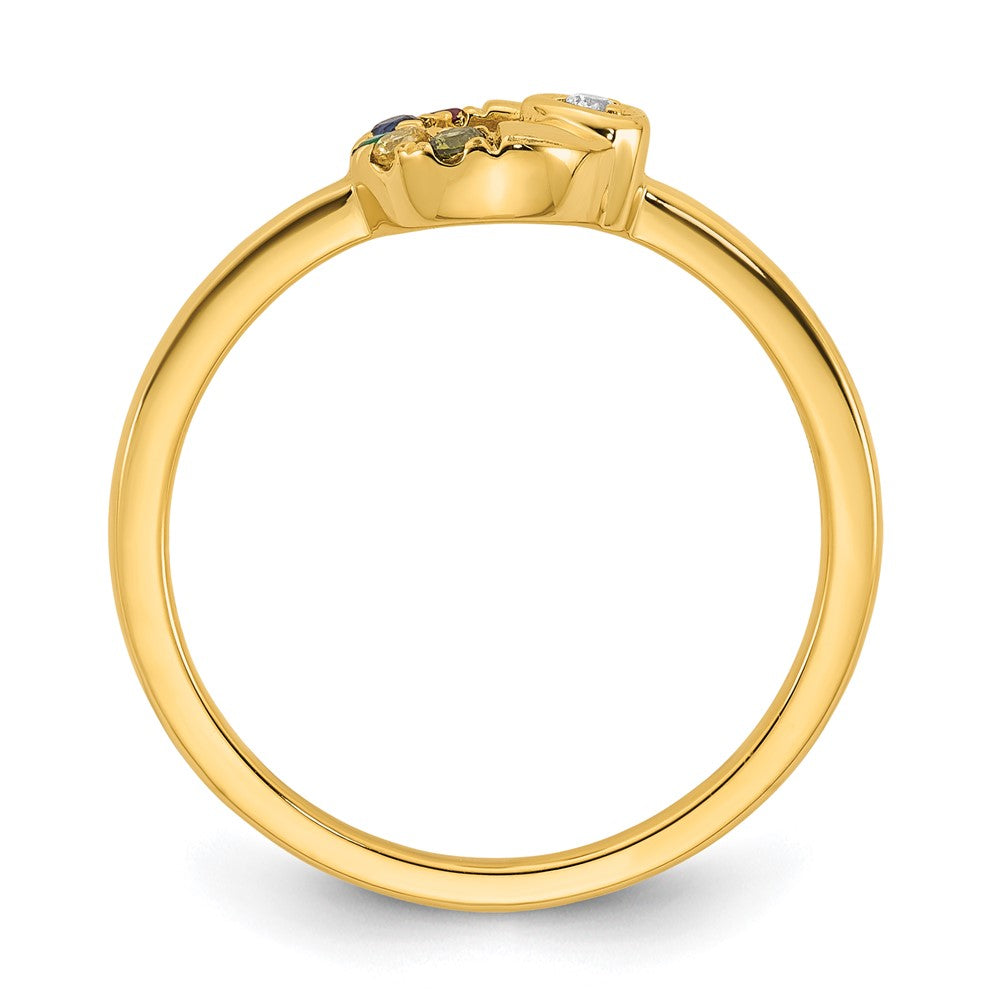 14k Diamond Heart with Synthetic 5 Birthstone Mother's Circle Ring