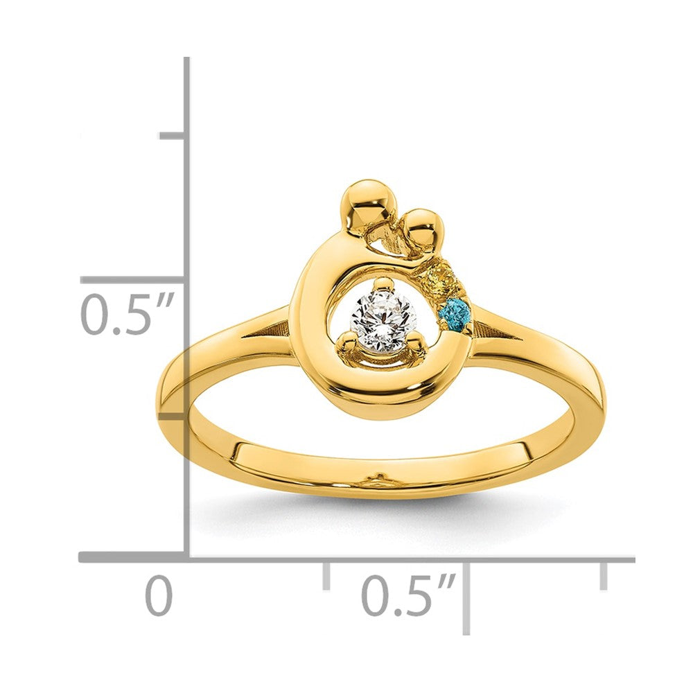 14k Diamond with 2 Synthetic Birthstone Mother/Child Ring