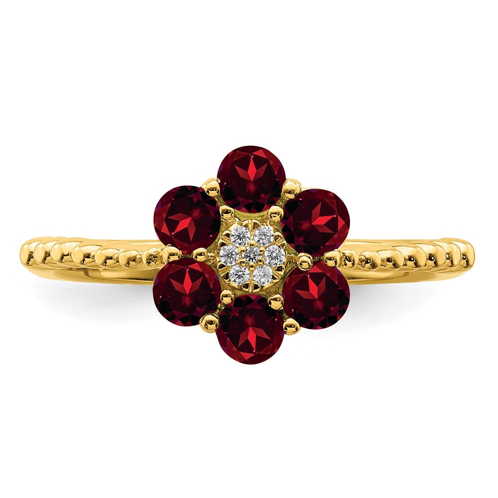 14k Garnet and Diamond Floral Ring