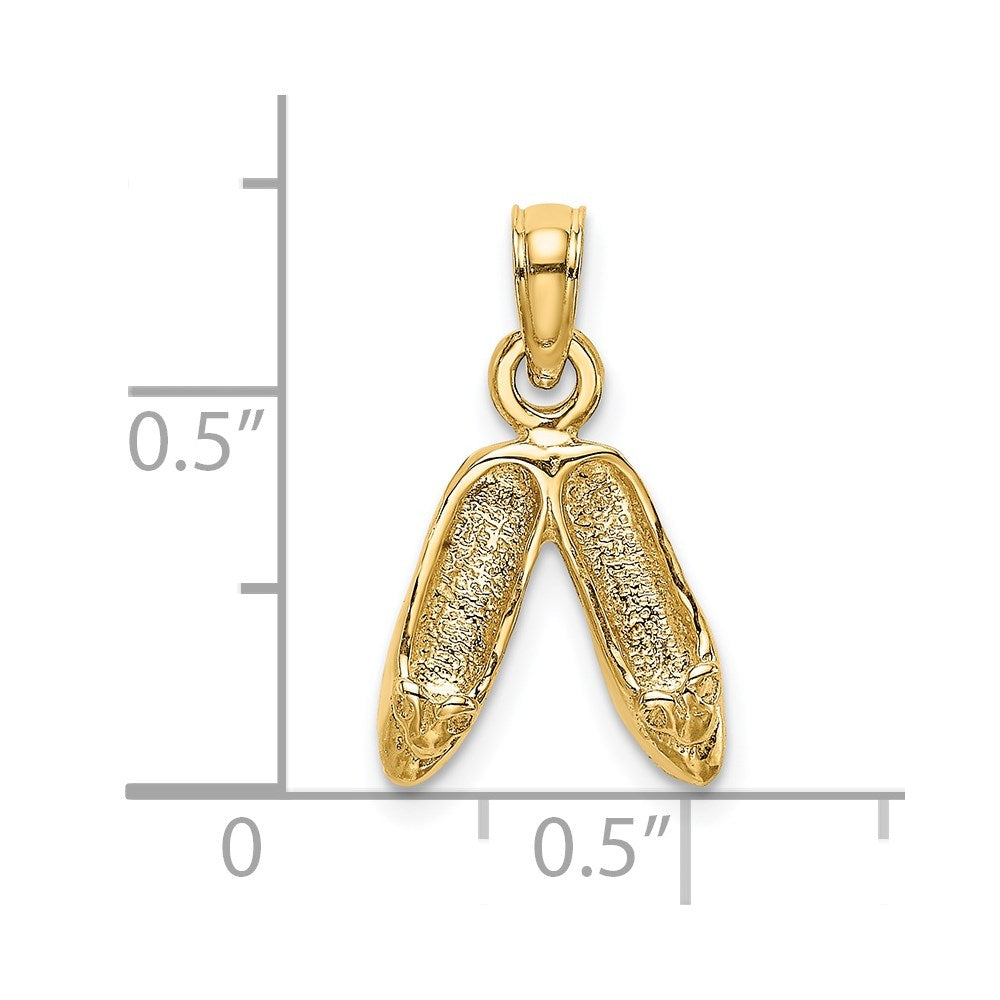 14K Gold 3D Polished Textured Ballerina Slippers Charm