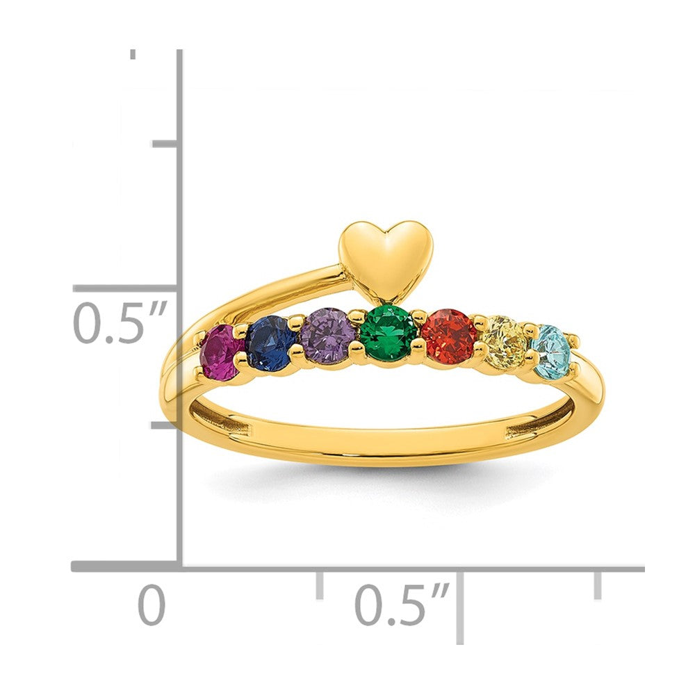 14k Heart with 7 Synthetic Birthstone Mother's Ring