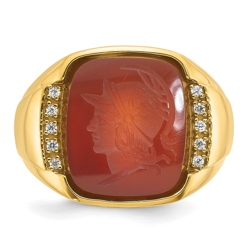14k IBGoodman Men's Carnelian and 1/10 carat Diamond Complete Ring