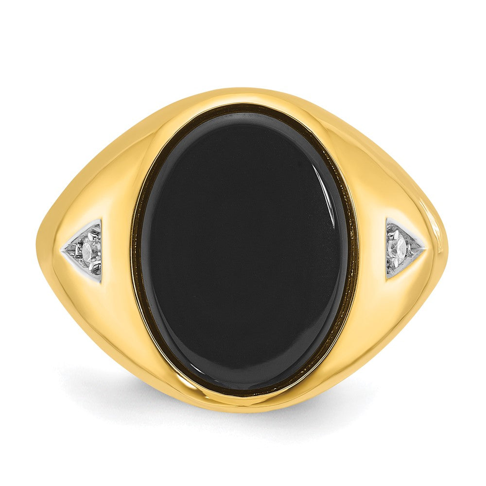 14k IBGoodman Men's Oval Onyx and 1/15 carat Diamond Complete Ring
