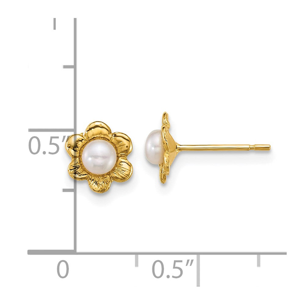 14k Madi K Polished 3- Button White Freshwater Cultured Pearl Flower Post Earrings