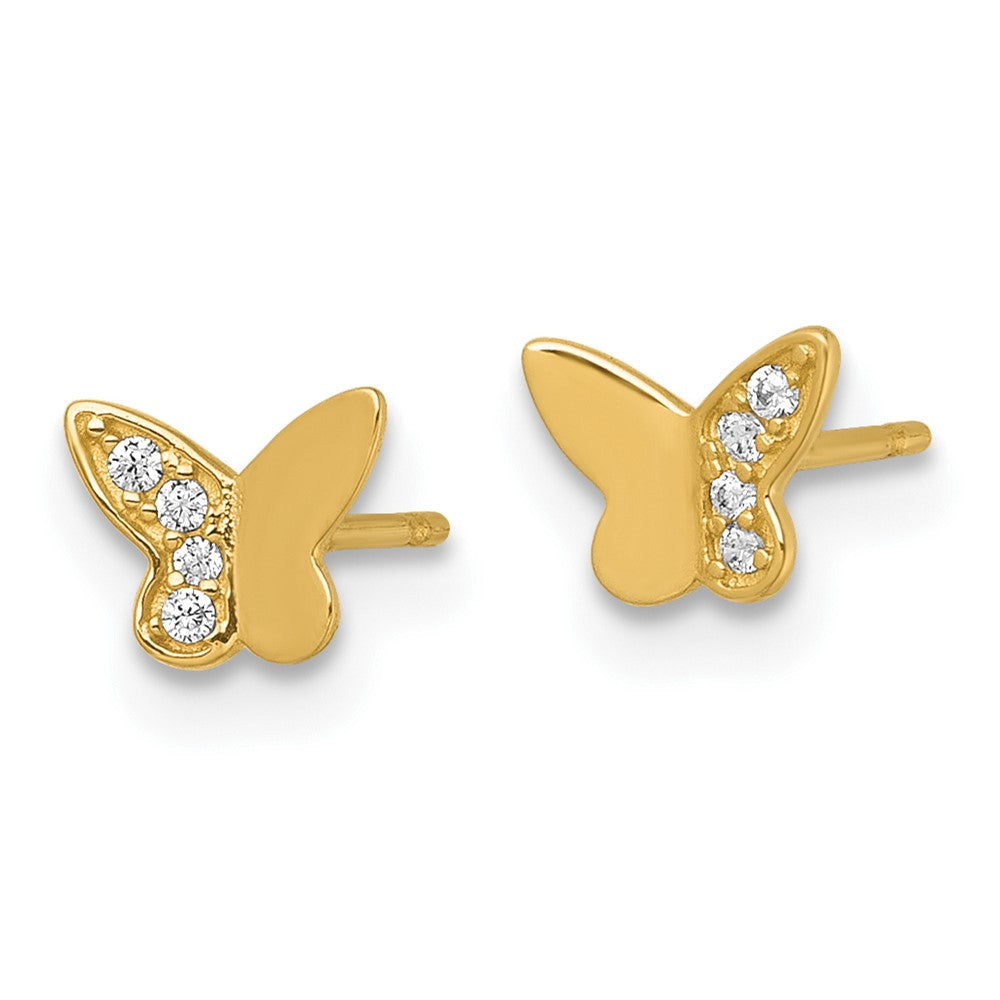 14k Madi K Polished CZ Butterfly Childrens Post Earrings