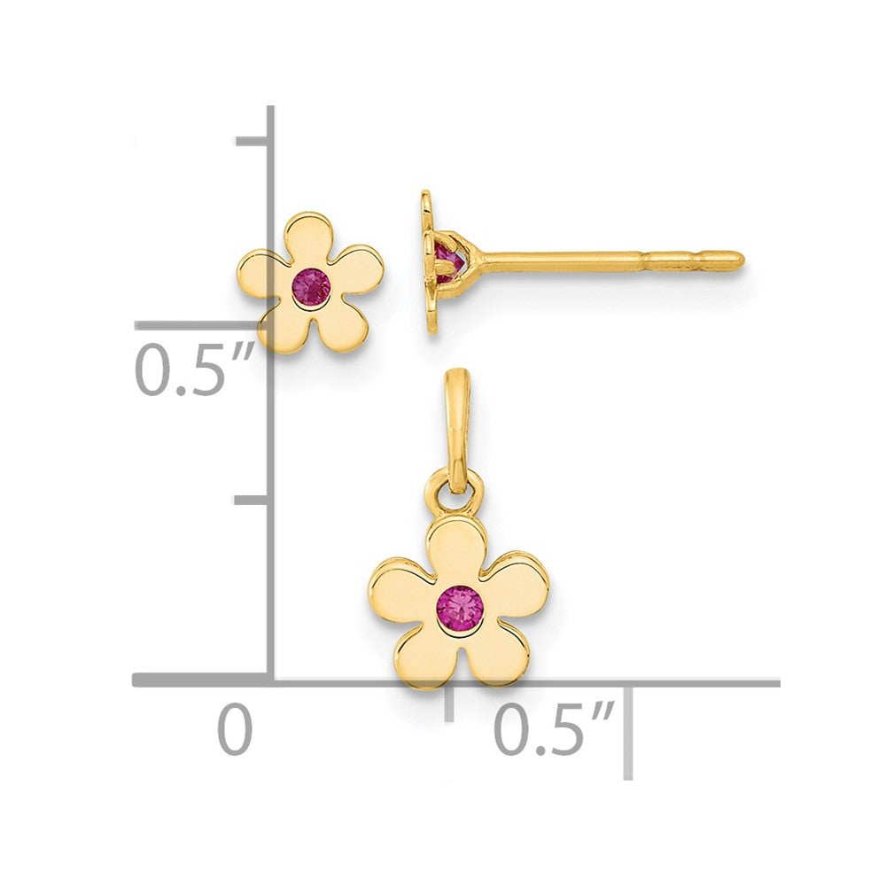 14K Madi K Polished CZ Flower Post Earrings and Flower Pendant Set