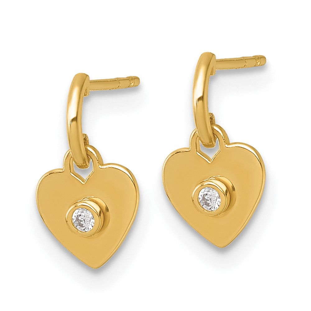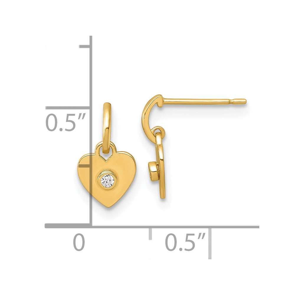 14k Madi K Polished CZ Heart Childrens Dangle Post Earrings